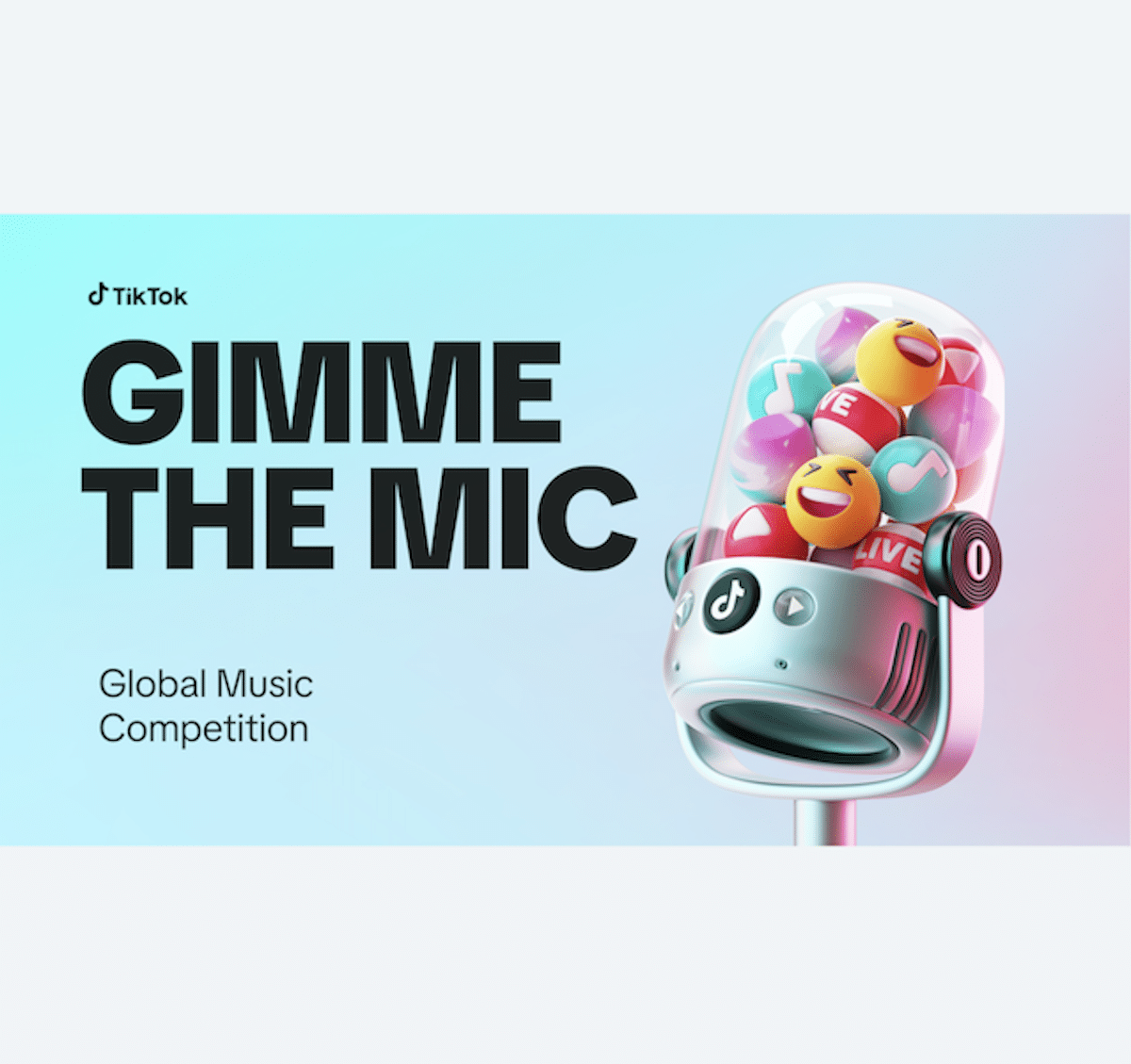 Η Tiktok Live ξεκίνησε έναν νέο διαγωνισμό μουσικής για την παγκόσμια κοινότητά του, Gimme the Mic. Οι ενδιαφερόμενοι χρήστες, 18 ετών και άνω, που πιστεύουν ότι έχουν τα φωνητικά κορδόνια για να ανταγωνιστούν και να κερδίσουν τον διαγωνισμό μπορούν να υποβάλουν τις ταινίες βίντεο ακρόασης στην εφαρμογή μεταξύ 7 Αυγούστου και 16 Αυγούστου.