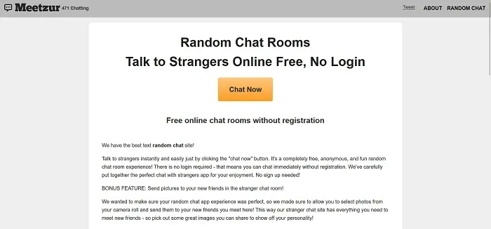 Το Chatrandom είναι ένας τυχαίος ιστότοπος συνομιλίας όπου μπορείτε να συνομιλήσετε με ξένους από όλο τον κόσμο. Είναι πολύ δημοφιλές στο Ηνωμένο Βασίλειο και στις ΗΠΑ, έχοντας περάσει από το 2012. Ο ιστότοπος έχει καλή φήμη ότι είναι ασφαλής και ασφαλής, οπότε δεν χρειάζεται να ανησυχείτε για την επίθεση από άλλους χρήστες στην πλατφόρμα τους. Έχουν επίσης πολλούς χρήστες, οπότε η εύρεση κάποιος ενδιαφέρον να μιλήσει πρέπει να είναι εύκολη.