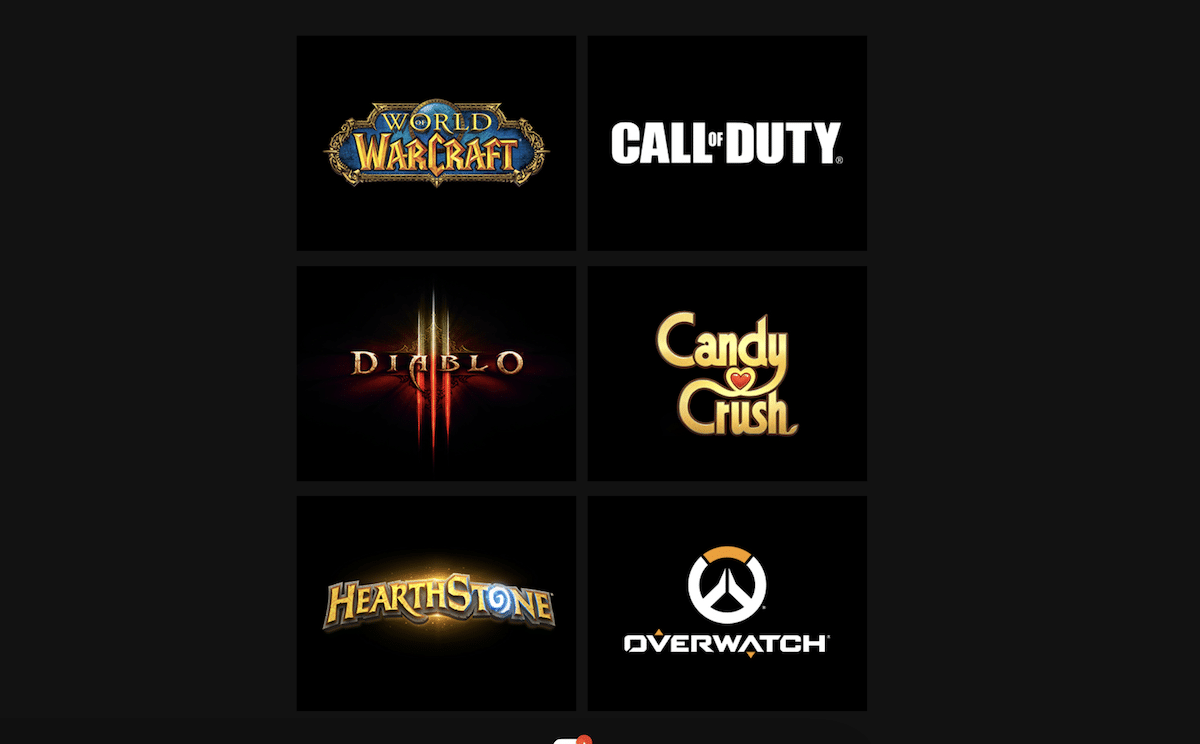 Χιονοθύελλαείναι μια δημοφιλής εταιρεία χαρτοφυλακίου βιντεοπαιχνιδιών που παρήγαγε διάσημους τίτλους όπως το Call of Duty, το World of Warcraft, το Overwatch, το Diablo, το Candy Crush Saga και άλλοι.