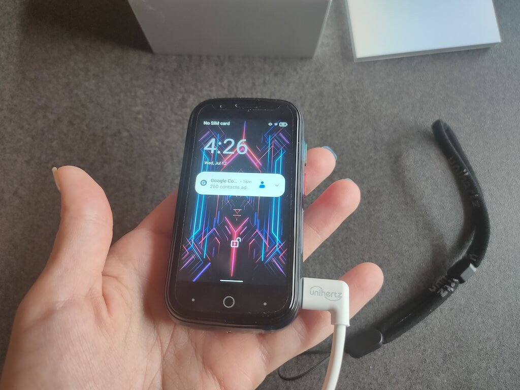 Μόλις έβαλα το αστέρι του Unihertz Jelly, ήμουν έκπληκτος από το συμπαγές του μέγεθος. Αυτό το μίνι smartphone ταιριάζει άνετα στην παλάμη του χεριού σας και γλιστρά εύκολα σε οποιαδήποτε τσέπη ή πορτοφόλι. Ωστόσο, παρά το μικρό του μέγεθος, έχει μια σταθερή κατασκευή και δεν αισθάνεται λεπτή.