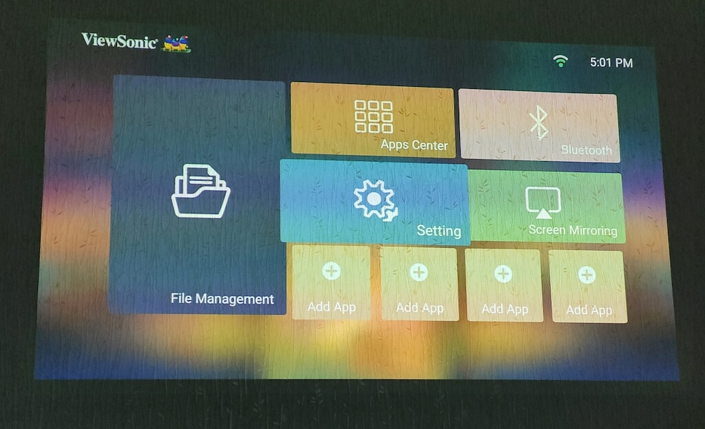 Ένα από τα πλεονεκτήματα του Viewsonic M2E είναι το εύκολο μενού και το φιλικό προς το χρήστη μενού. Θα είστε σε θέση να εκτελέσετε το M2E σας, ακόμη και αν δεν έχετε χρησιμοποιήσει ποτέ έναν προβολέα πριν. Τοποθετήστε το M2E μπροστά από μια οθόνη ή έναν τοίχο, συνδέστε το με την τροφοδοσία και ενεργοποιήστε το. Το Viewsonic Advanced AutoFocus και οριζόντια και κατακόρυφη διόρθωση Keystone θα κάνει τα υπόλοιπα και θα σας προσφέρει αμέσως μια αναλογική εικόνα. Συνδέστε τον προβολέα με Wi-Fi και είστε καλό να πάτε.