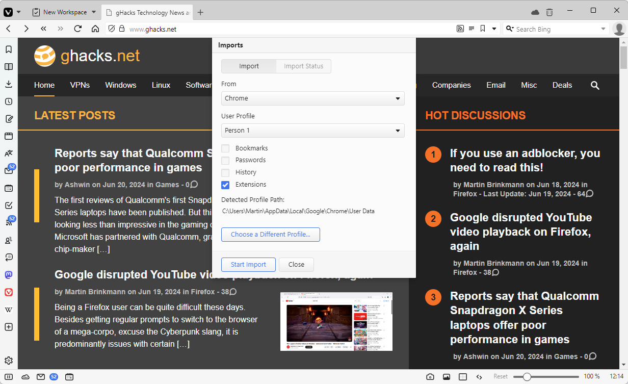 Ένα από τα σημαντικότερα σημεία του Vivaldi 6.8 είναι η δυνατότητα εισαγωγής επεκτάσεων από άλλα προγράμματα περιήγησης με βάση το χρωμίου. Αυτό περιλαμβάνει το Google Chrome, αλλά και γενναία, όπερα ή Microsoft Edge.