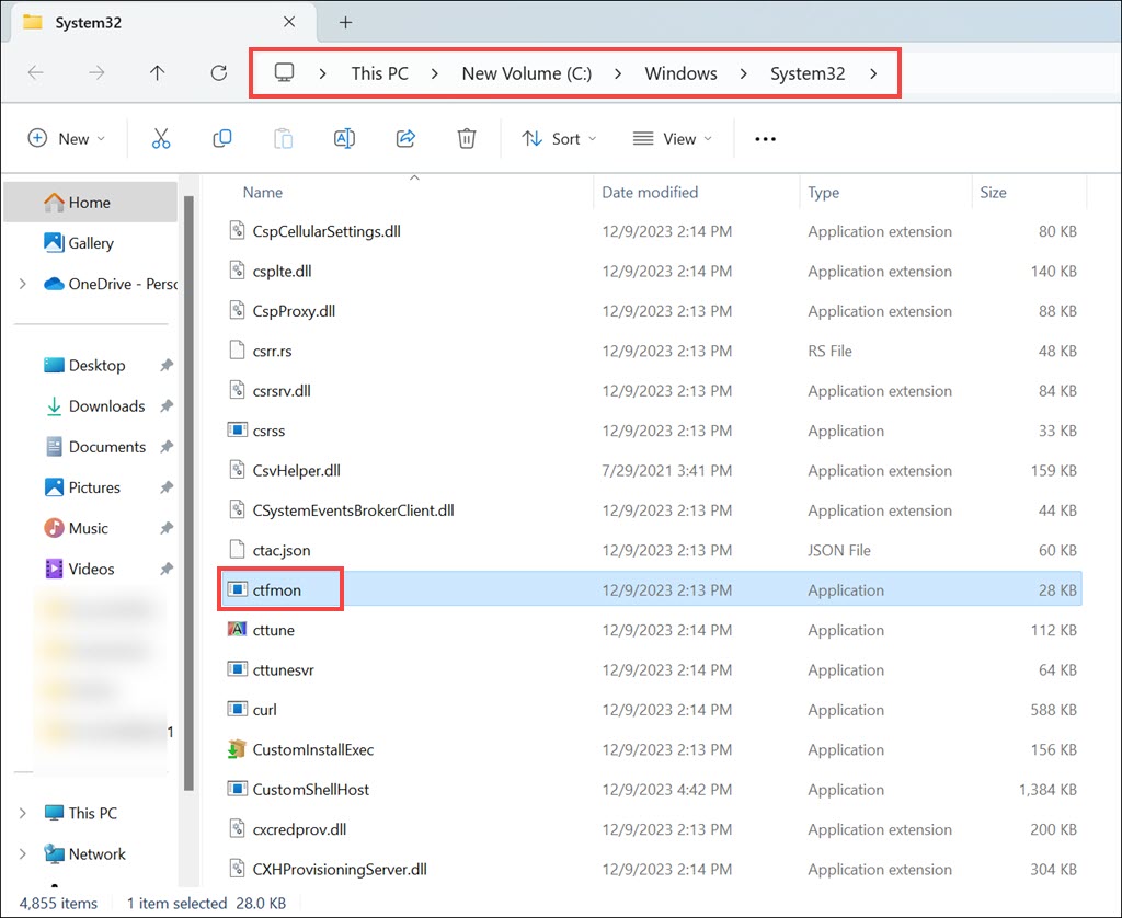4.Ο πραγματικός φορτωτής CTF πρέπει να βρίσκεται σε φάκελο συστήματος Windows, συνήθως 'Γ: WindowsSystem32'. Εάν βρίσκεται αλλού, θα μπορούσε να είναι μια κόκκινη σημαία.