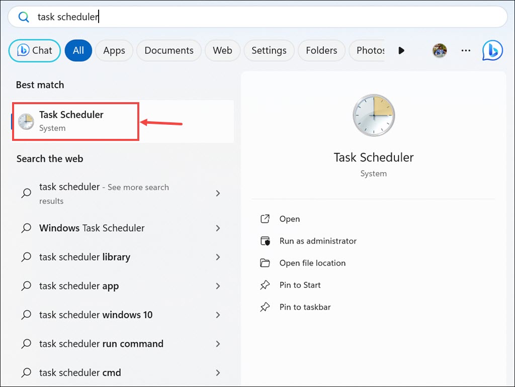 1.ΤύποςΠρογραμματιστής εργασιώνστη γραμμή αναζήτησης των Windows και ανοίξτε την.