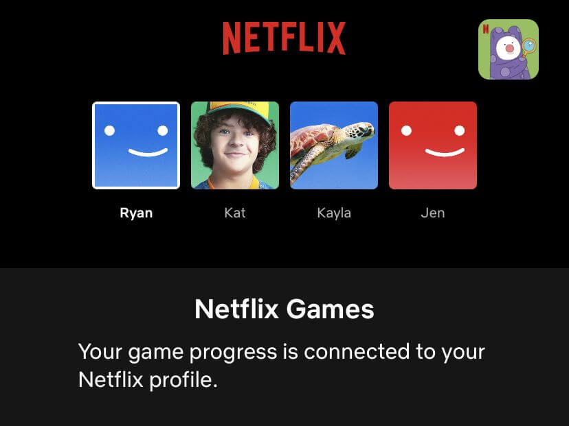 Καθώς παίζετε το παιχνίδι, η Netflix θα εξοικονομήσει την πρόοδό σας στο λογαριασμό Netflix που το παίζει. Μπορείτε να δείτε σε ποιο λογαριασμό είναι συνδεδεμένο με το παιχνίδι, πατώντας στην εικόνα στην επάνω δεξιά γωνία.