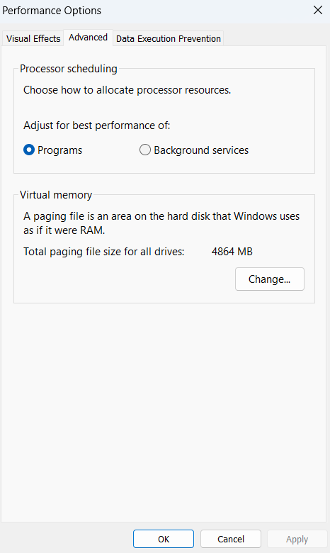 - ΣτοΕικονική μνήμηπαράθυρο, καταργήστε την επιλογή τουΔιαχειριστείτε αυτόματα το μέγεθος του αρχείου για όλες τις μονάδες δίσκου.