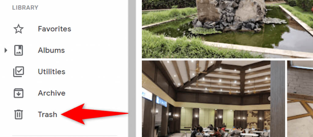 Ένας άλλος πιθανός λόγος που δεν μπορείτε να βρείτε μια φωτογραφία στο Google Photos είναι ότι (κατά λάθος) διαγράψατε τη φωτογραφία. Ελέγξτε τους φακέλους απορριμμάτων για να δείτε αν η εικόνα σας είναι ακόμα διαθέσιμη για την αποκατάσταση.