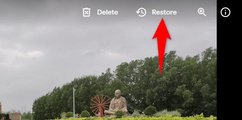 - Επιλέξτε τη φωτογραφία για επαναφορά στα δεξιά και επιλέξτεΕπαναφέρωστην επάνω δεξιά γωνία.
