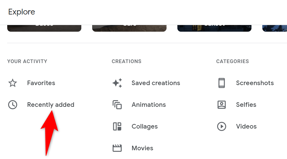 - ΕπιλέγωΠροστέθηκε πρόσφαταΣτην ενότητα "Η δραστηριότητά σας" στο κάτω μέρος της σελίδας εξερεύνησης. Θα δείτε όλες τις φωτογραφίες και τα βίντεο που προστέθηκαν πρόσφατα στο λογαριασμό σας, από το νεότερο έως το παλαιότερο.