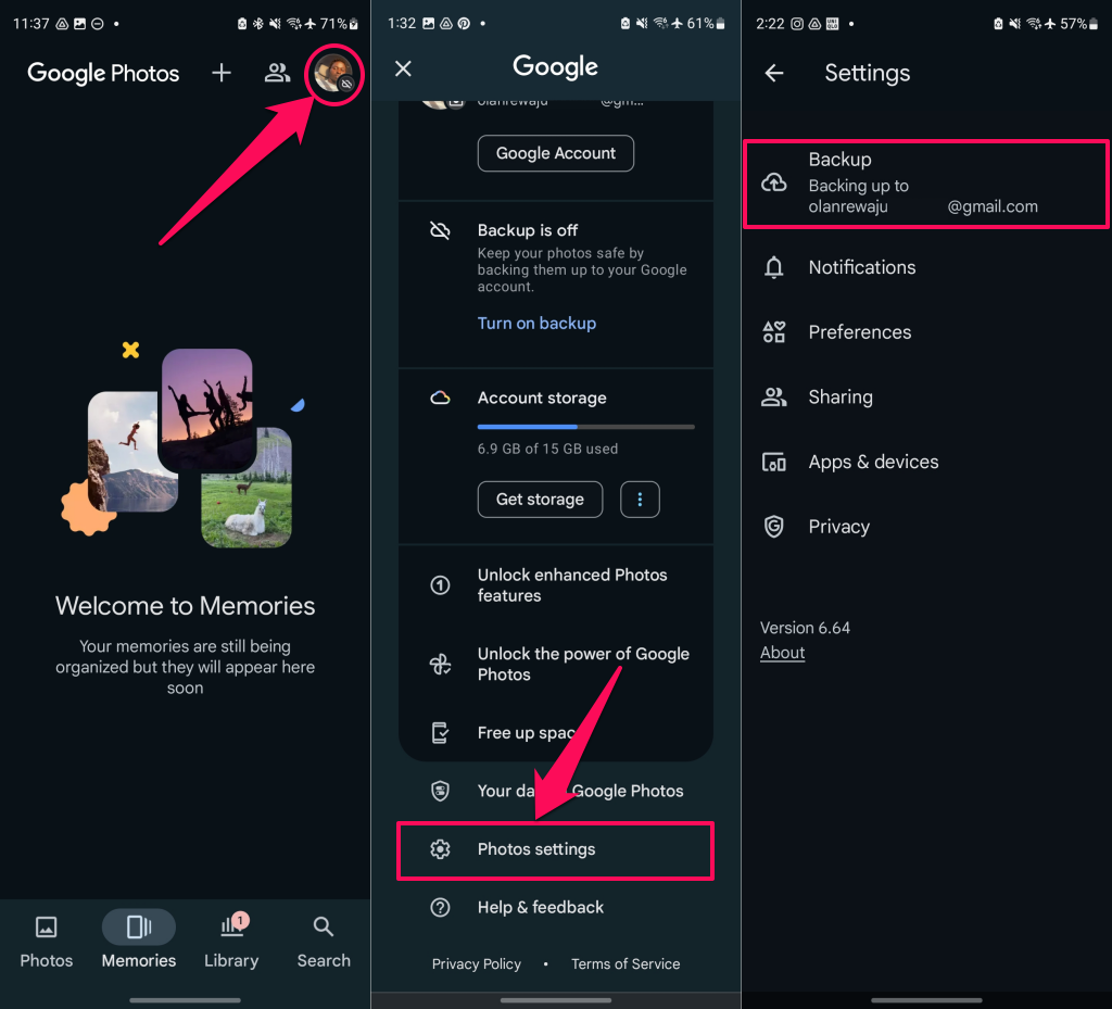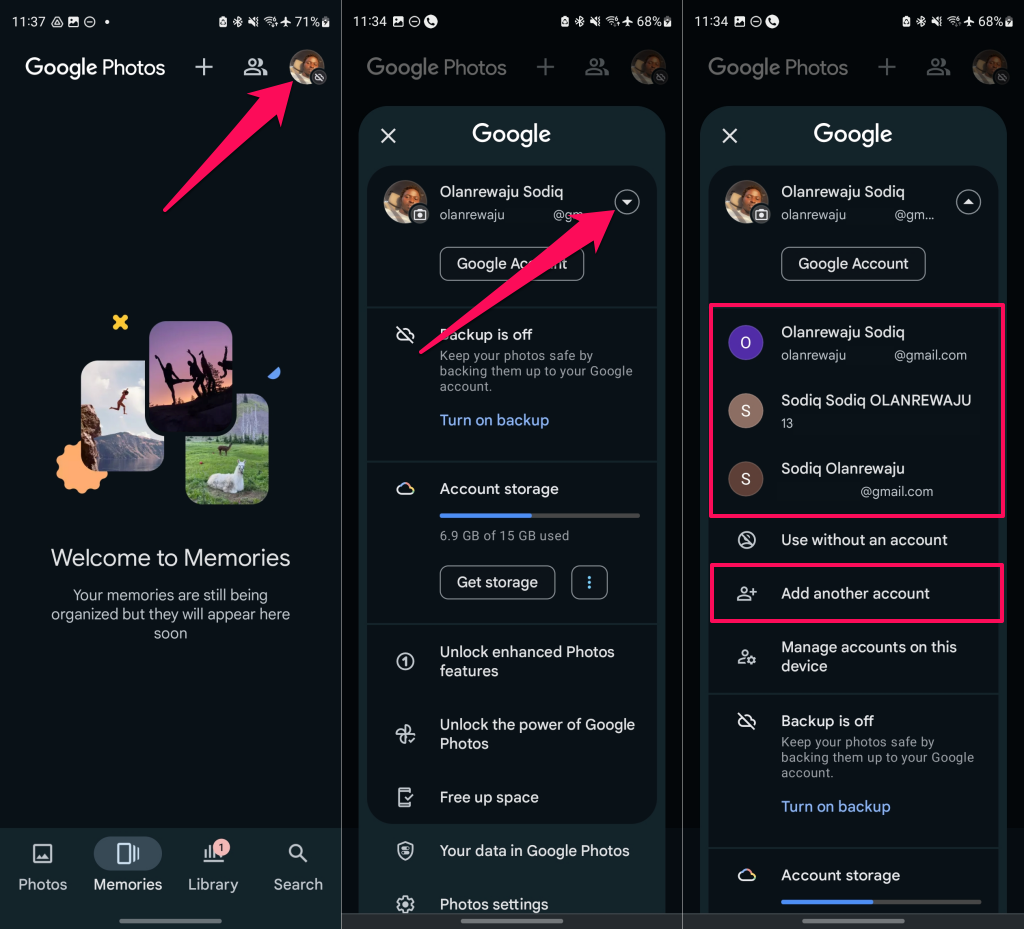 Όταν δεν μπορείτε να βρείτε τις φωτογραφίες σας, το πρώτο πράγμα που πρέπει να κάνετε είναι να επαληθεύσετε ότι είστε συνδεδεμένοι με τον σωστό λογαριασμό Google. Εάν πολλοί λογαριασμοί Google συνδέονται με τη συσκευή σας, βεβαιωθείτε ότι ψάχνετε τον σωστό λογαριασμό για τις φωτογραφίες σας. Ακολουθήστε τα παρακάτω βήματα για να ελέγξετε και να αλλάξετε λογαριασμούς στο Google Photos.
