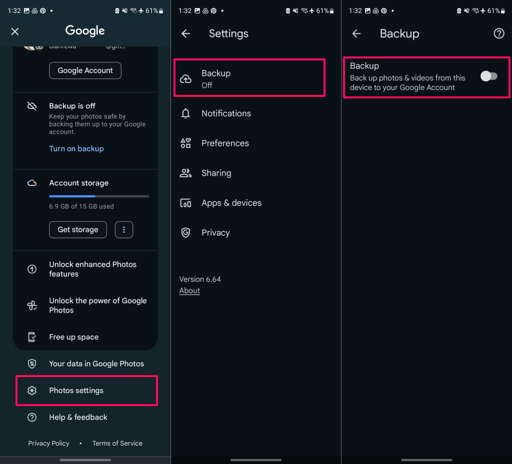 Ελέγξτε τη ρύθμιση δημιουργίας αντιγράφων ασφαλείας Google Photos