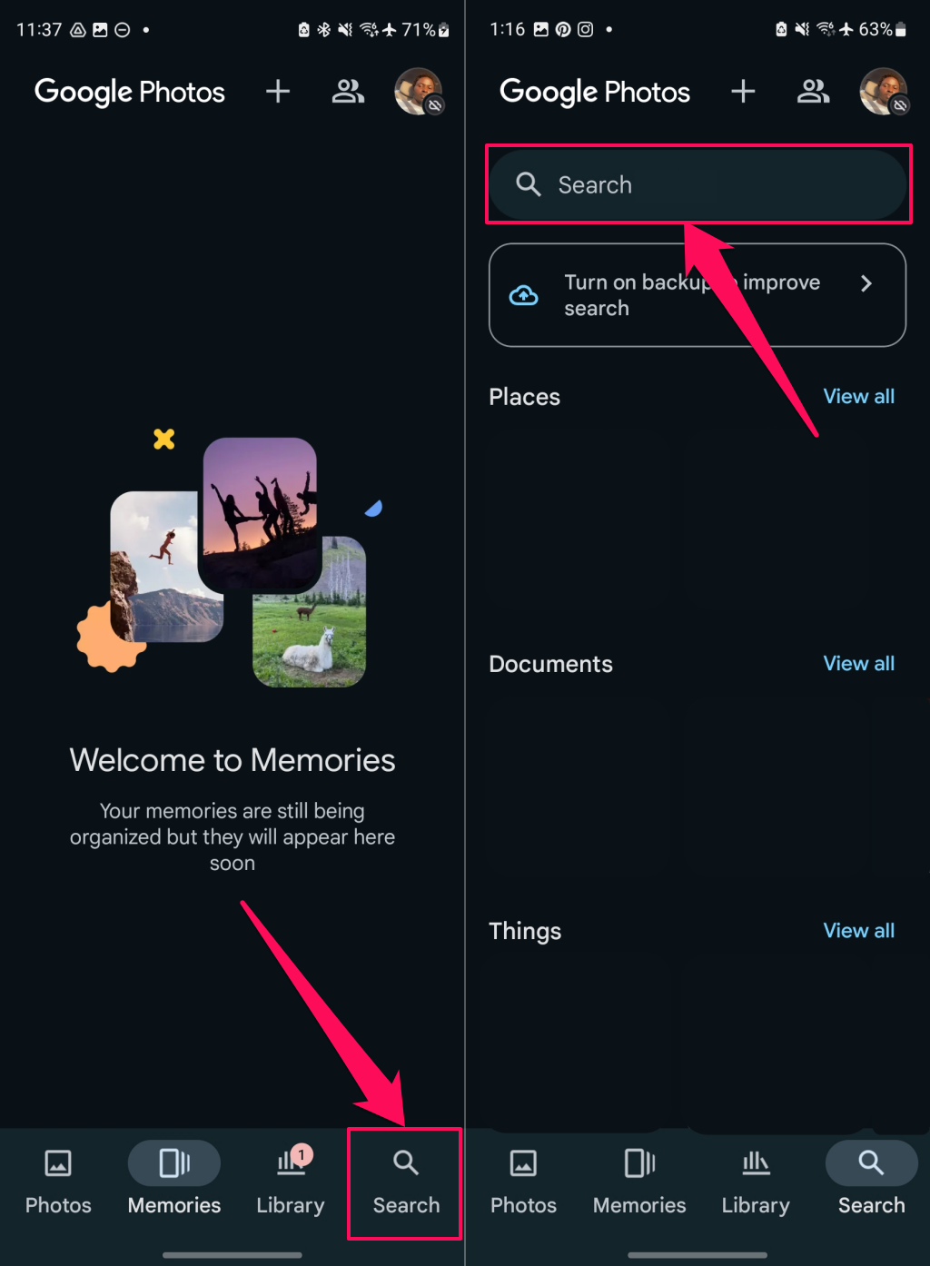 - Ξεκινήστε το Google Photos και πατήστε την επιλογή αναζήτησης στην κάτω δεξιά γωνία.