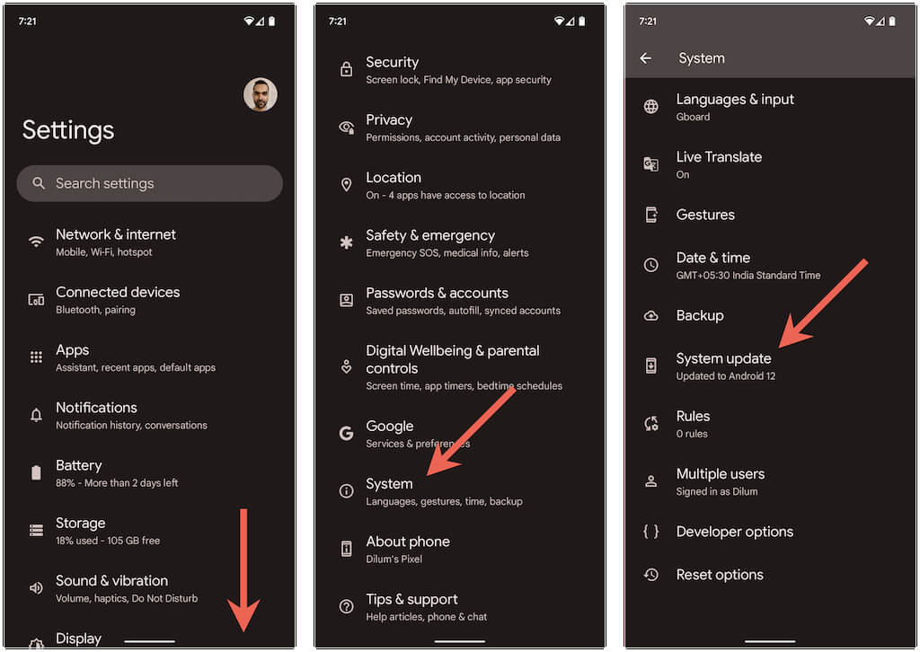 Μια νεότερη ενημέρωση Android θα μπορούσε να περιέχει μια λύση λογισμικού που μπορεί να επιλύσει προβλήματα με διαλείπουσα αποσύνδεση Wi-Fi. Για να ελέγξετε και να εγκαταστήσετε ενημερώσεις λογισμικού συστήματος, μετακινηθείτε προς τα κάτω τα τηλέφωνά σας AndroidΡυθμίσειςμενού και πατήστεΣύστημα>Ενημέρωση συστήματος.