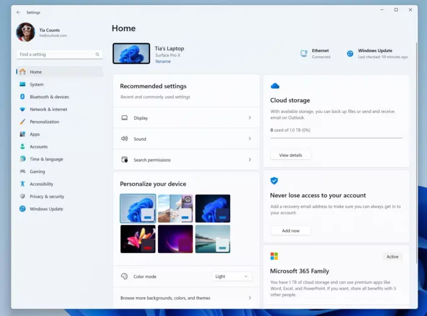 Σύμφωνα μεMicrosoft, η νέα αρχική σελίδα για την εφαρμογή Ρυθμίσεις στα Windows 11 23H2 είναι μια πιο εξατομικευμένη και διαδραστική εμπειρία από την τρέχουσα σελίδα. Χωρίζεται σε τρία τμήματα: εξατομίκευση, συσκευές και πολλά άλλα.