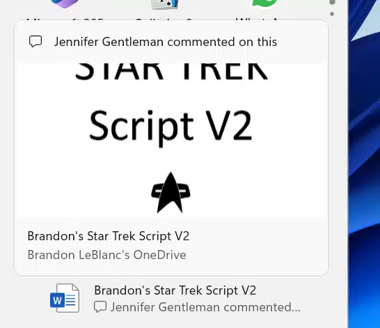 Όταν αιωρείται πάνω από ένα αρχείο cloud στο μενού Start, οι χρήστες θα δουν μια πλούσια μικρογραφία προεπισκόπηση του αρχείου. Αυτή η προεπισκόπηση θα εμφανίσει το όνομα, το μέγεθος και τον τύπο του αρχείου. Θα εμφανίσει επίσης μια μικρογραφία του αρχείου, εάν είναι διαθέσιμη.