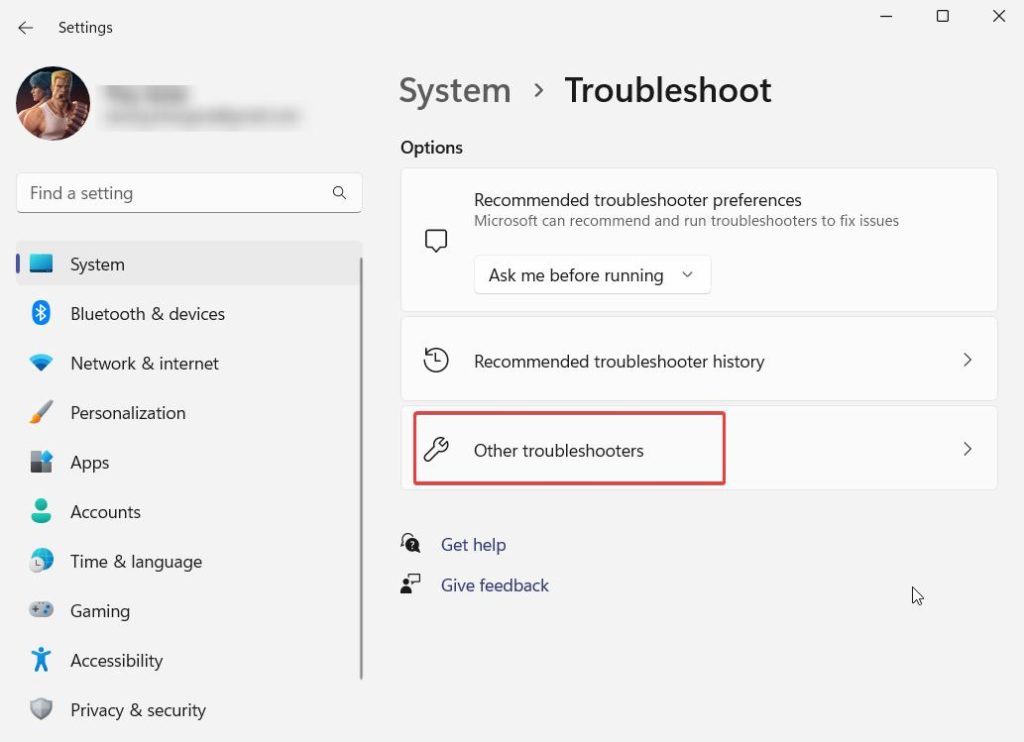 - Στη δεξιά πλευρά, μετακινηθείτε προς τα κάτω και κάντε κλικ στο κουμπίΑντιμετώπιση προβλημάτων.