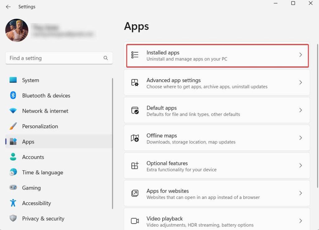 - Από τα δεξιά, κάντε κλικ στοΕγκατεστημένες εφαρμογές.