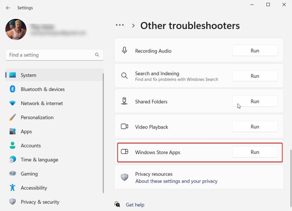 Τα ίδια τα Windows διαθέτουν αρκετούς αντιμετώπους προβλημάτων που μπορούν να σας βοηθήσουν να προσδιορίσετε το πρόβλημα και στη συνέχεια να λάβετε τα κατάλληλα βήματα. Για να εκτελέσετε τις εφαρμογές Windows Store Apps Αντιμετώπιση προβλημάτων, ακολουθήστε τα βήματα που αναφέρονται παρακάτω -