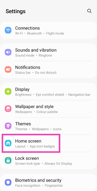Βήμα 1:ΠηγαίνωΡυθμίσειςκαι επιλέξτεΑρχική οθόνη.