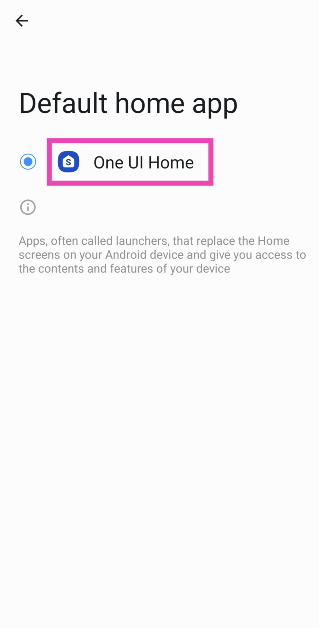 Βήμα 2:Επιλέξτε την προεπιλογήεκτοξευτής αρχικής οθόνηςεφαρμογή.