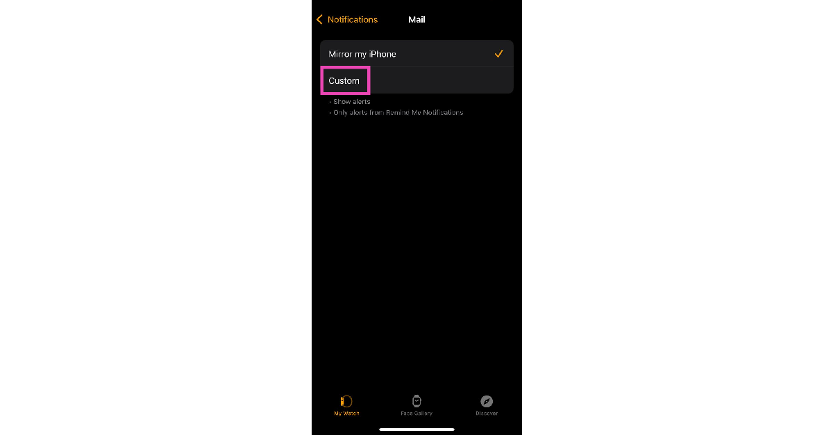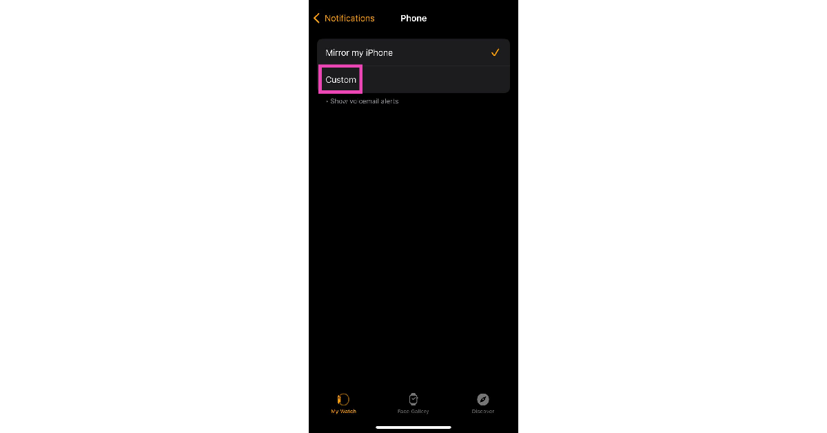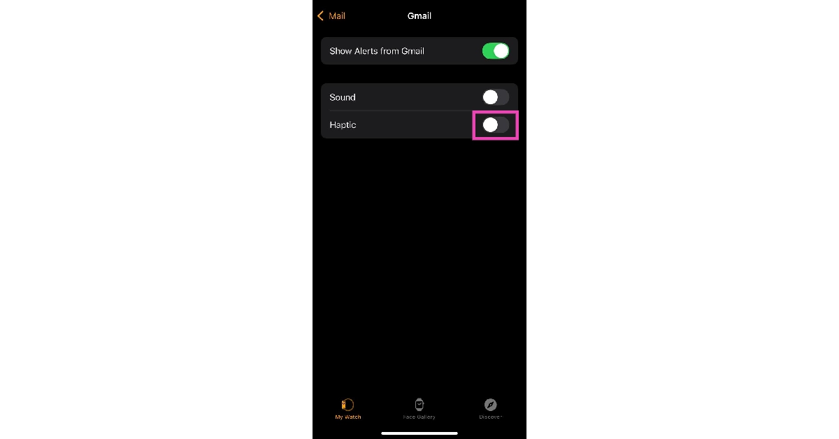 Εάν δεν θέλετε ανατροφοδότηση δόνησης για τις ειδοποιήσεις από μια συγκεκριμένη εφαρμογή, απλά ξεκινήστε την εφαρμογή Apple Watch στο iPhone σας και επιλέξτε την εν λόγω εφαρμογή στις ρυθμίσεις ειδοποιήσεων. Πατήστε στο Custom και απενεργοποιήστε το διακόπτη εναλλαγήςΑπτικός.