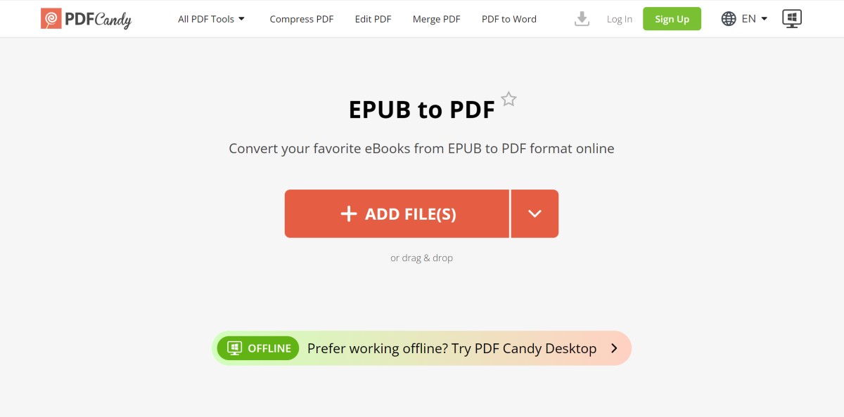 Εργαλεία PDF 24έχει έναν πολύ εύχρηστο μετατροπέα που μπορεί να αλλάξει οποιοδήποτε αρχείο EPUB στη μορφή PDF. Μπορείτε είτε να επιλέξετε ένα αρχείο από τη συσκευή σας είτε απλά να το μεταφέρετε και να το αφήσετε στο πλαίσιο. Μόλις μεταφορτωθεί το αρχείο στον ιστότοπο, χτυπήστε το Convert. Θα χρειαστούν εργαλεία PDF24 λίγα δευτερόλεπτα για να μετατρέψετε το αρχείο. Μόλις τελειώσει η μετατροπή, πατήστε Λήψη για να αποθηκεύσετε το αρχείο που μετατρέπεται στη συσκευή σας. Τα εργαλεία PDF24 λειτουργούν άψογα σε Windows, Linux, Mac, iOS και Android.