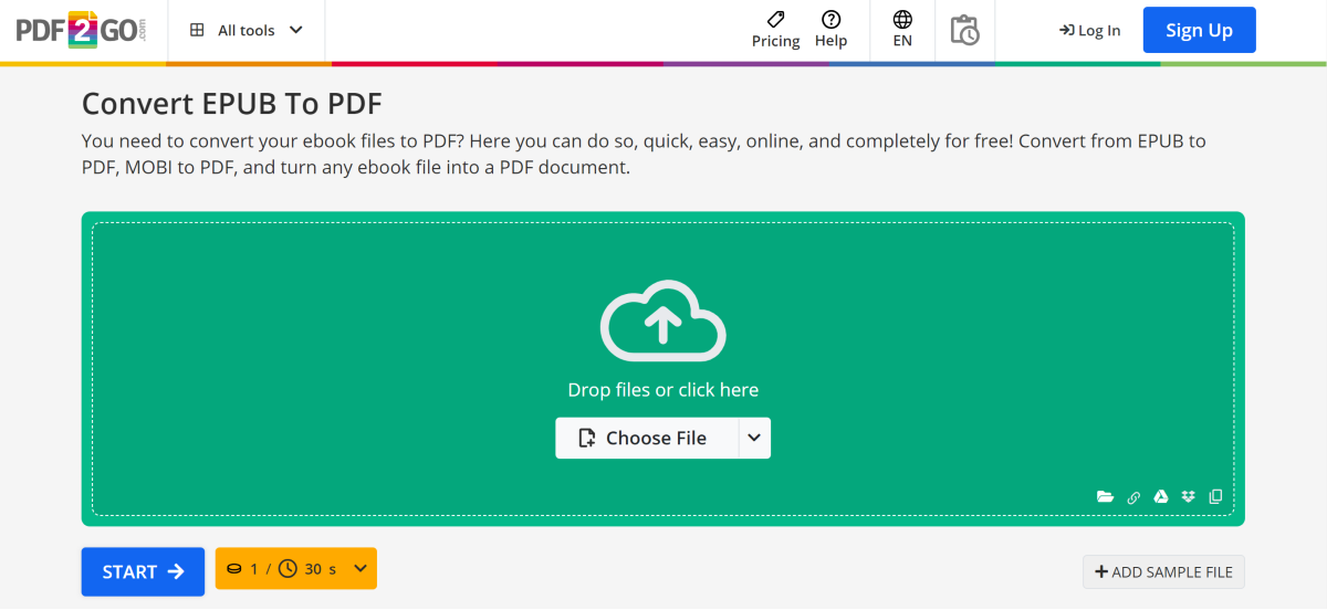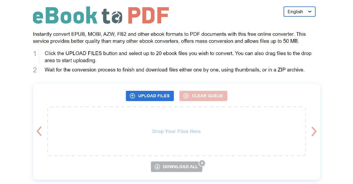 Εάν ενδιαφέρεστε να μετατρέψετε τη μορφή πολλαπλών αρχείων ταυτόχρονα, ελέγξτεebook2pdf. Αυτό το δωρεάν ηλεκτρονικό εργαλείο σάς επιτρέπει να μετατρέψετε μέχρι και 20 τίτλους ταυτόχρονα. Το όριο μεγέθους ορίζεται στα 50MB. Εκτός από το Epub, μπορείτε επίσης να μετατρέψετε μορφές όπως Mobi, AZW, FB2 και πολλά άλλα. Ενώ αυτός ο ιστότοπος χρησιμοποιεί επεξεργασία σύννεφων για να μετατρέψει τα αρχεία σας, διαρρέει αυτόματα τα δεδομένα από τους διακομιστές του κάθε 60 λεπτά.