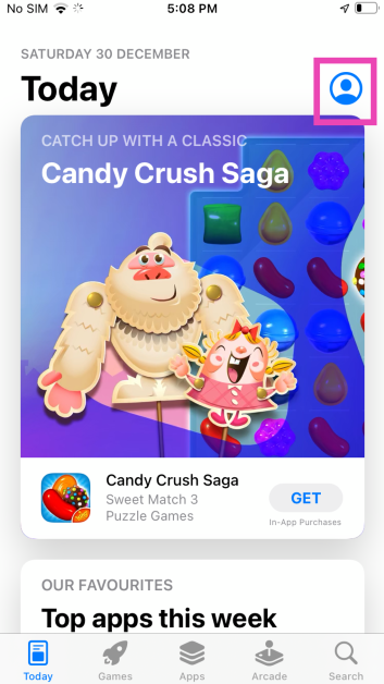 Εάν τα θέματα που σχετίζονται με το λογαριασμό σας εμποδίζουν να ενημερώσετε τις εφαρμογές στο iPhone σας, να συνδεθείτε από το κατάστημα εφαρμογών και να συνδεθείτε ξανά. Ξεκινήστε το App Store, πατήστε το εικονίδιο προφίλ στην επάνω δεξιά γωνία της οθόνης, μετακινηθείτε προς τα κάτω και πατήστε 'Sign Out'. Τώρα, υπογράψτε πίσω χρησιμοποιώντας το αναγνωριστικό της Apple.