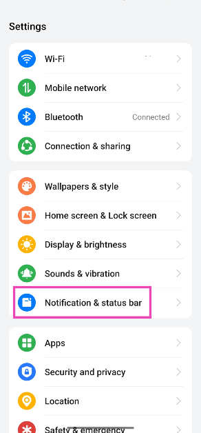 Βήμα 1:ΠηγαίνωΡυθμίσειςκαι επιλέξτεΓραμμή ειδοποίησης και κατάστασης.