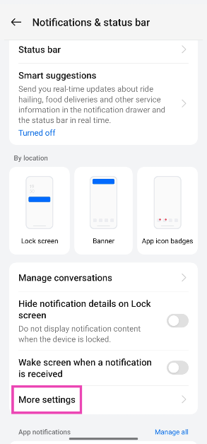 ΠηγαίνωΡυθμίσεις> Ειδοποίηση και γραμμή κατάστασης> Περισσότερες ρυθμίσειςΚαι απενεργοποιήστε το διακόπτη εναλλαγής δίπλα σε «φυσαλίδες».