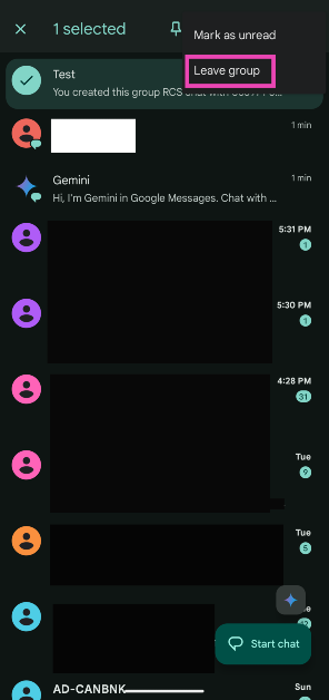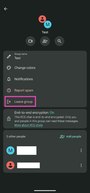 Αφήστε μια ομαδική συνομιλία στο Android από το μενού ομάδας