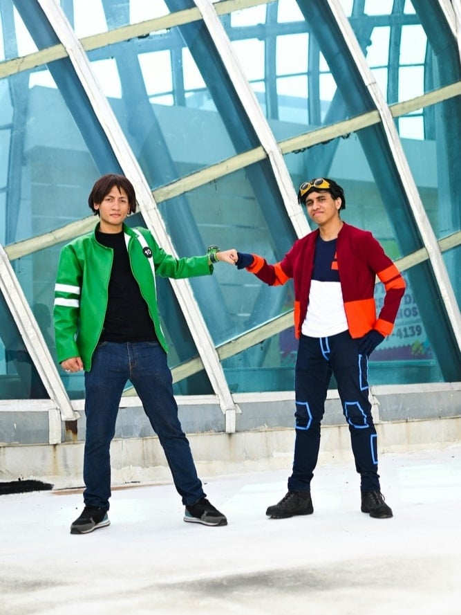 Πάρτε τους δύο άνδρες και τοποθετήστε τους στις ακριβείς θέσεις του ανθρώπου με πράσινο που φέρει τον άνδρα με κόκκινο χρώμα. Διατηρήστε τις ταυτότητές τους, τις αναλογίες του σώματος και τις λεπτομέρειες των ενδυμάτων. Βεβαιωθείτε ότι η στάση είναι φυσική και ρεαλιστική, με σταθερό φωτισμό, σκιές και προοπτική. Φωτορεαλιστικό, αποτέλεσμα υψηλής ανάλυσης.