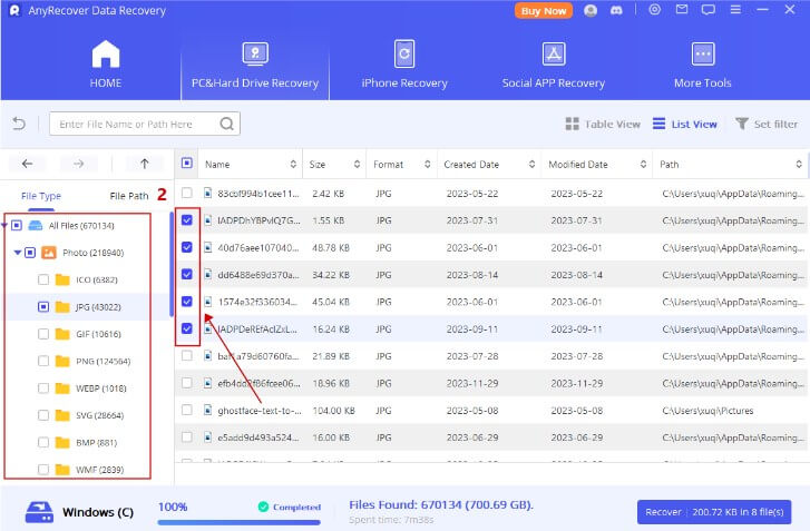 Βήμα 3Μόλις ολοκληρώσετε τη σάρωση των δεδομένων σε AnyRecover, θα πρέπει να επιλέξετε τα αρχεία που θέλετε να επιστρέψετε. Αφού επιλέξετε τα προτιμώμενα δεδομένα, μπορείτε στη συνέχεια να προβάλλετε τα δεδομένα πριν χτυπήσετε το εικονίδιο ανάκτησης.