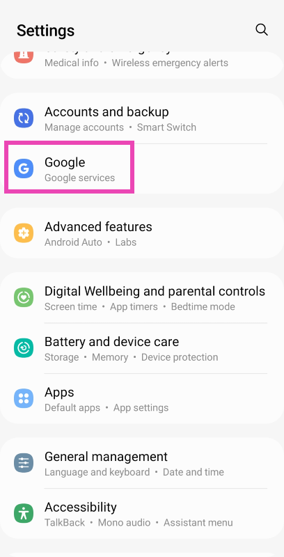 Βήμα 1:ΠηγαίνωΡυθμίσειςκαι επιλέξτεGoogle.