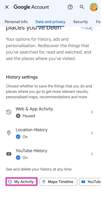 Ο λογαριασμός σας στο Google καταγράφει το ιστορικό ιστού και την εφαρμογή σας, το ιστορικό τοποθεσίας και το ιστορικό του YouTube. Μπορείτε να τα διαγράψετε από τη σελίδα 'My Activity' στο λογαριασμό σας στο Google.