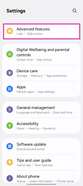 Βήμα 1:ΠηγαίνωΡυθμίσειςκαι επιλέξτεΠροχωρημένες λειτουργίες.