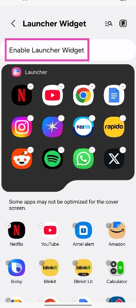 Βήμα 4:Ενεργοποιήστε τοδιακόπτης εναλλαγήςκαιεπιλέγωοεφαρμογέςΘέλετε να χρησιμοποιήσετε στην οθόνη εξώφυλλου.