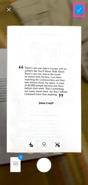 Βήμα 4:Μόλις σαρωθεί το έγγραφο, πατήστε τοτσιμπούριεικονίδιο στην επάνω δεξιά γωνία της οθόνης.