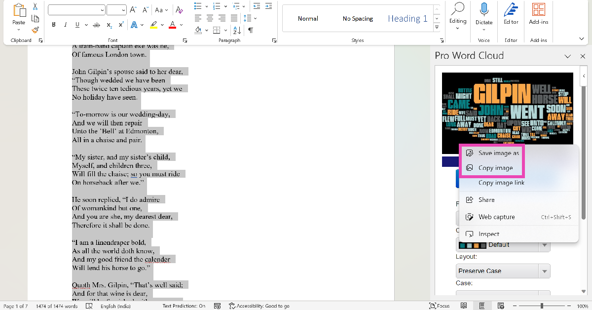 Υπάρχει τρόπος να δημιουργηθεί ένα σύννεφο λέξεων για το κείμενο σε ένα έγγραφο της Microsoft Word;