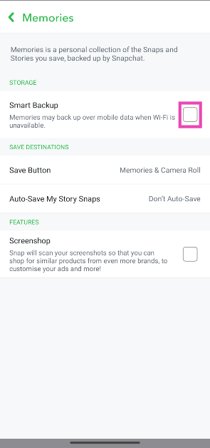 Ναι, μπορείτε να πάτεΠροφίλ> Ρυθμίσεις> ΑναμνήσειςΚαι ενεργοποιήστε το διακόπτη εναλλαγής δίπλα στο "Smart Backup" για να βεβαιωθείτε ότι δεν χάνετε ποτέ τις αναμνήσεις σας.