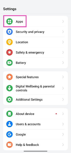 Βήμα 2:Μετακινηθείτε προς τα κάτω και επιλέξτεΕφαρμογές.