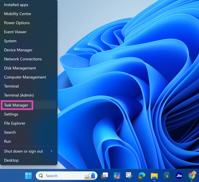 Βήμα 1:Κάντε δεξί κλικστοΕικονίδιο των Windowsστη γραμμή εργασιών και επιλέξτε Διαχείριση εργασιών.
