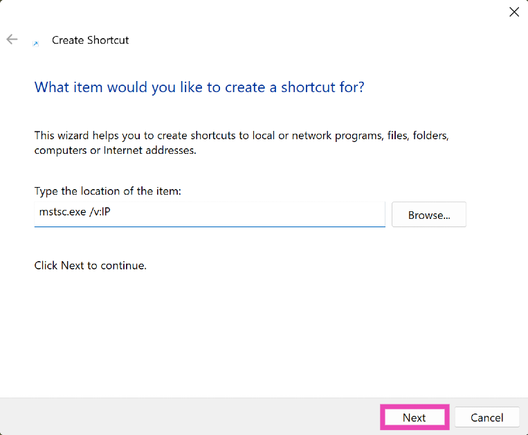 Δημιουργήστε μια συντόμευση επιφάνειας εργασίας για απομακρυσμένη σύνδεση επιφάνειας εργασίας στα Windows 11