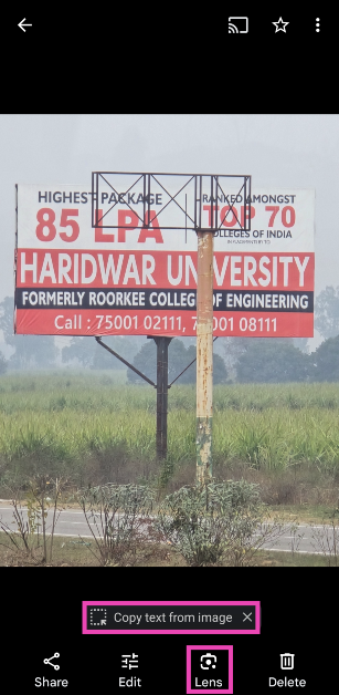 Οι εφαρμογές Google Photos και οι εφαρμογές Google Lens μπορούν να εξαγάγουν κείμενο από οποιαδήποτε εικόνα στη συλλογή του τηλεφώνου σας. Χτυπήστε το εικονίδιο φακού κάτω από μια εικόνα για να αντιγράψετε το κείμενο.