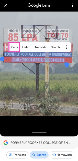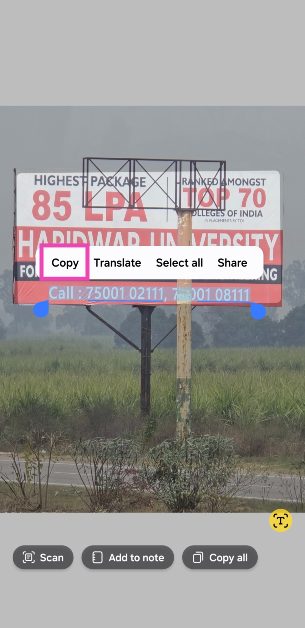 Βήμα 5:Το κείμενο από την εικόνα θα επιλεγεί. Χτυπήστε τοΑντίγραφοεικόνισμα.