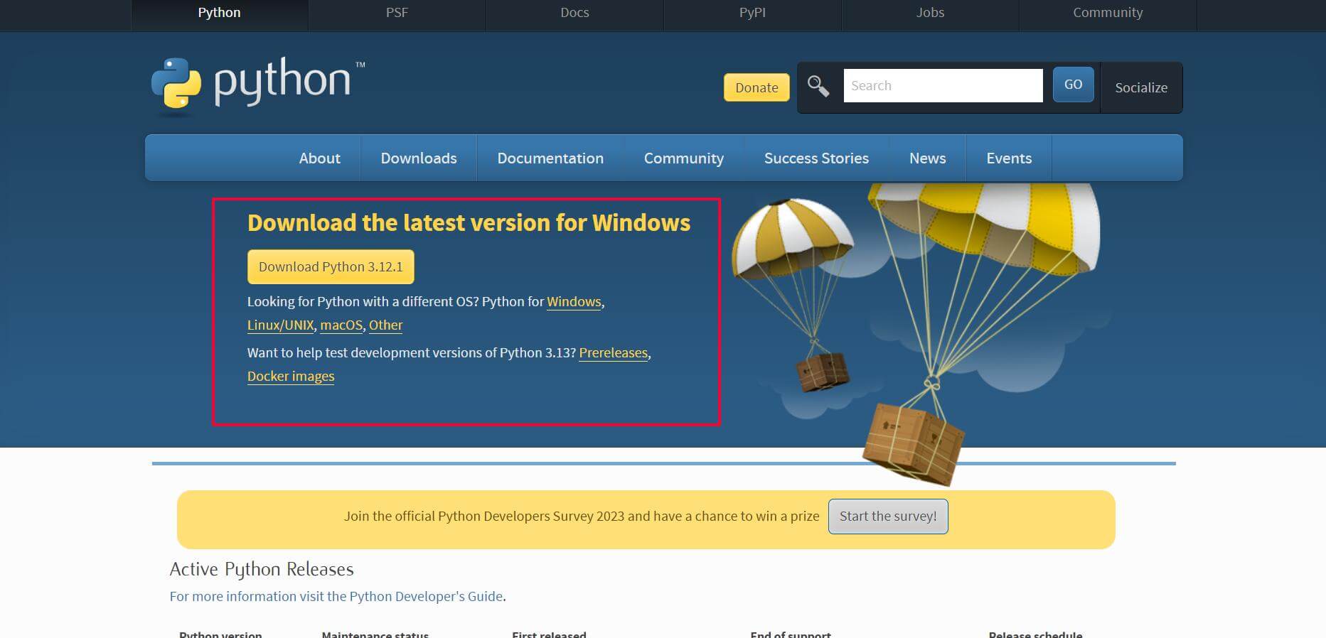 Βήμα 1.Επισκεφθείτε την επίσημη Pythonδικτυακός τόποςΓια να κατεβάσετε την τελευταία έκδοση του Python για το λειτουργικό σας σύστημα.