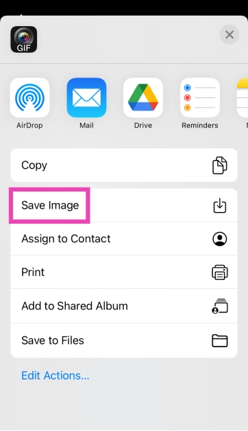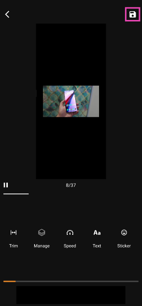 Βήμα 9:Επεξεργαστείτε το GIF στην επόμενη σελίδα. Χτυπήστε τοδισκέταστην επάνω δεξιά γωνία της οθόνηςεκτόςτο gif.