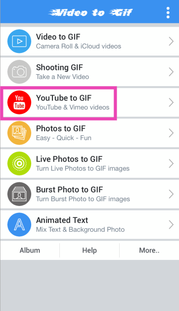 Βήμα 2:Ξεκινήστε την εφαρμογή και επιλέξτεYouTube στο GIF.