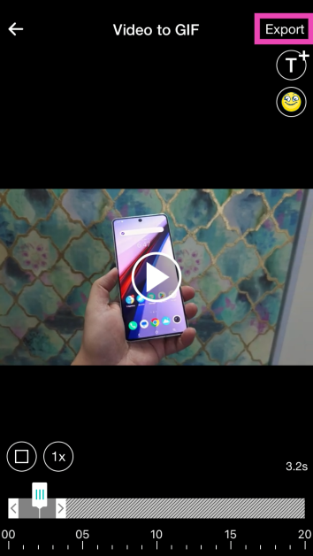 Βήμα 4:Χρησιμοποιήστε τοολισθητήςΣτο κάτω μέρος για να επιλέξετε το χρονικό εύρος για το GIF. Μπορείτε επίσης να επιλέξετε να προσθέσετε ένα κείμενο ή ένα αυτοκόλλητο.