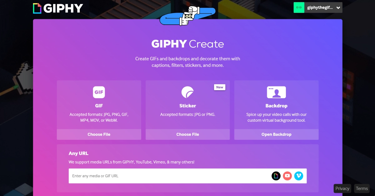 Βήμα 3:Αντιγράφω τοσύνδεσμοςτου βίντεο του YouTube και επικολλήστε το στο "Οποιαδήποτε διεύθυνση URL'Πλαίσιο στο Giphy.
